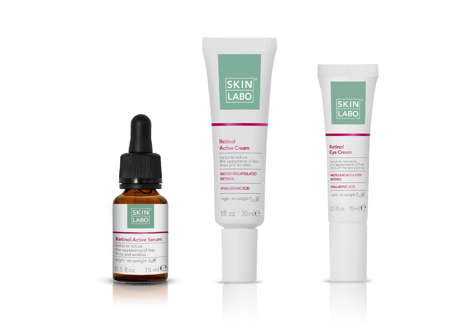 Complete your facial skincare with Retinol Eye Cream (3) by patting and massaging gently from the inner to the outer eye contour.