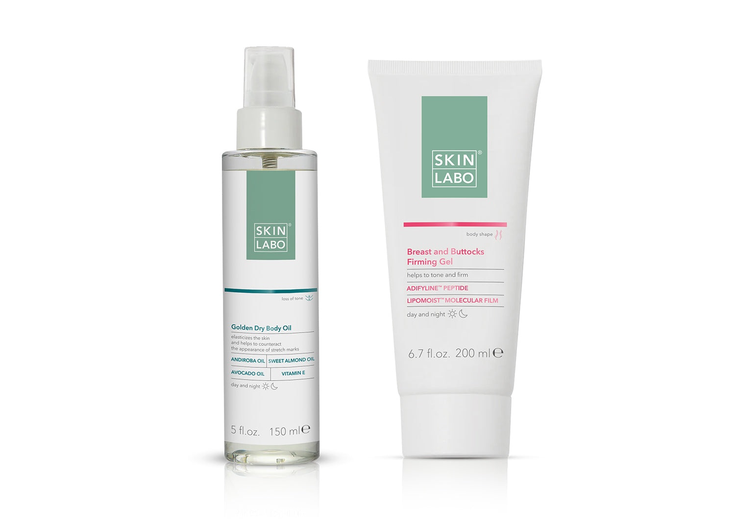 Apply Breast and Buttocks Gel (2) and massage into belly and hips until completely absorbed.