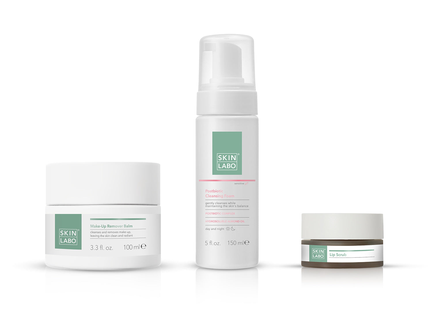Should you be wearing make-up, remove make-up from your face with the Cleansing Butter (1) and complete the double cleanse with the Postbiotic Cleansing Mousse (2).