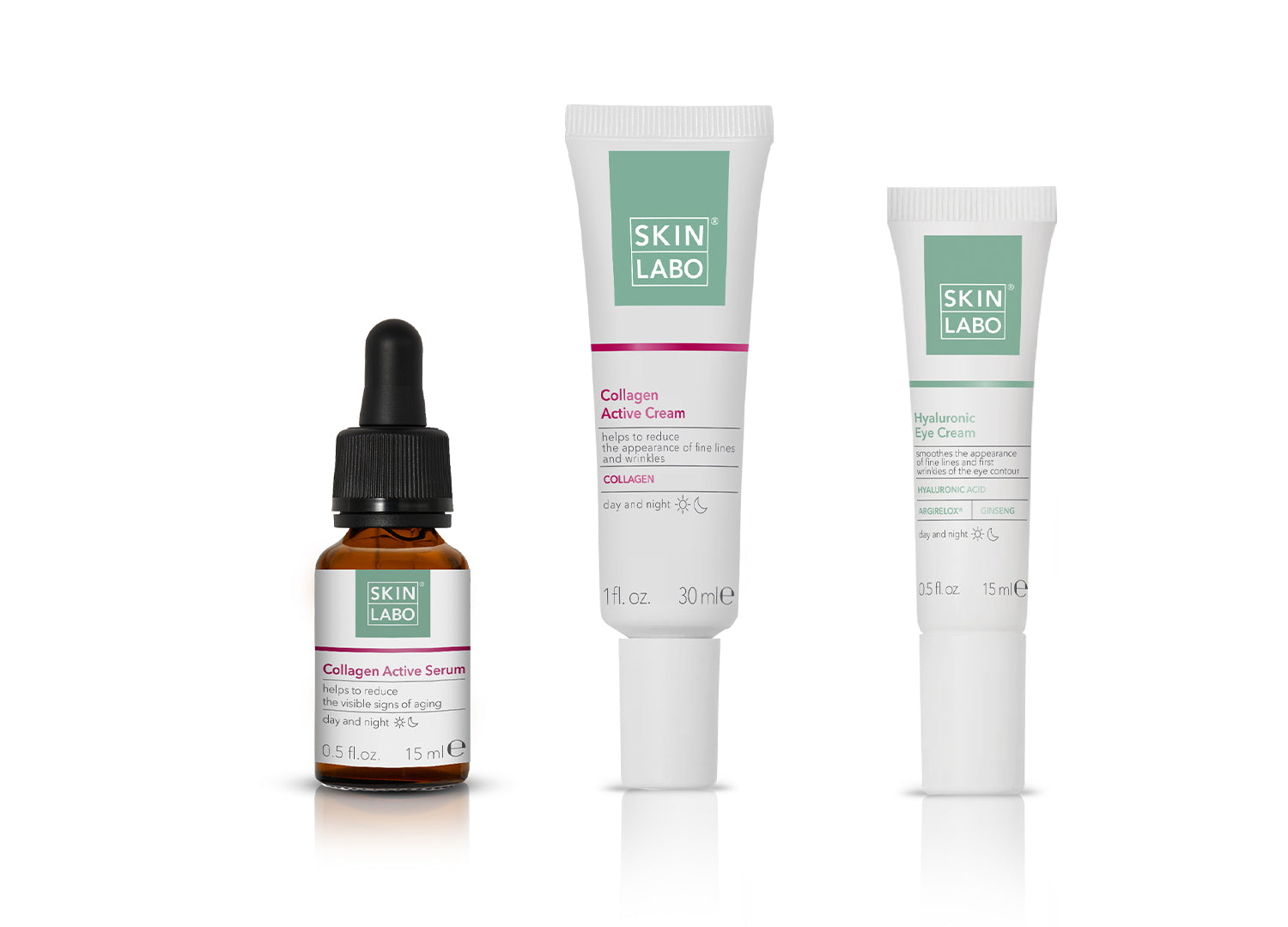 Apply Collagen Active Cream (2), massaging into the face until it is completely absorbed. Then finish the skincare with the Hyaluronic Eye Cream (3), patting and massaging gently from the inner to the outer corner of the eye contour.