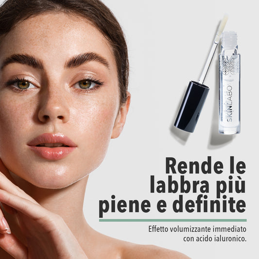 After cleansing, apply the Volumizing Lip Cream (1) directly onto the lips, massaging gently: allow the product to be absorbed before applying lipstick where needed.