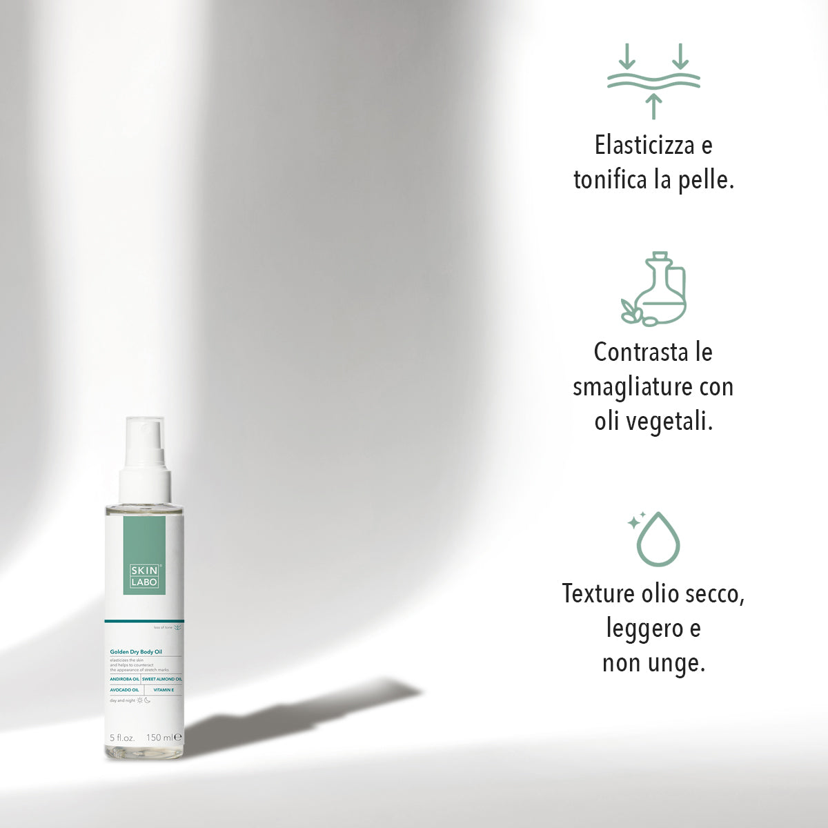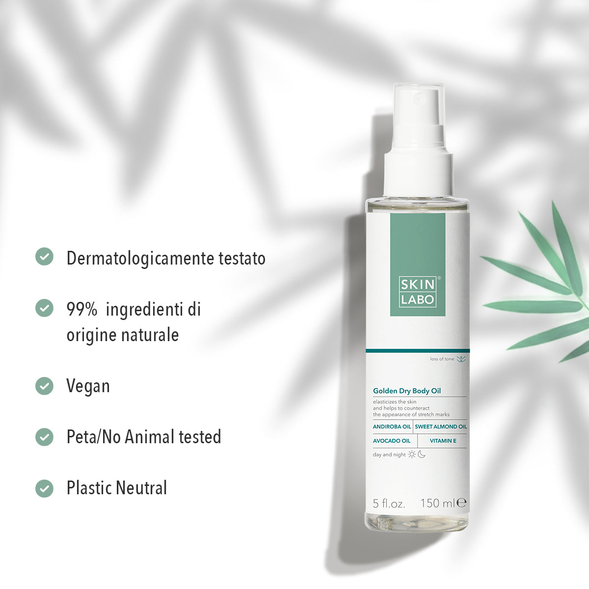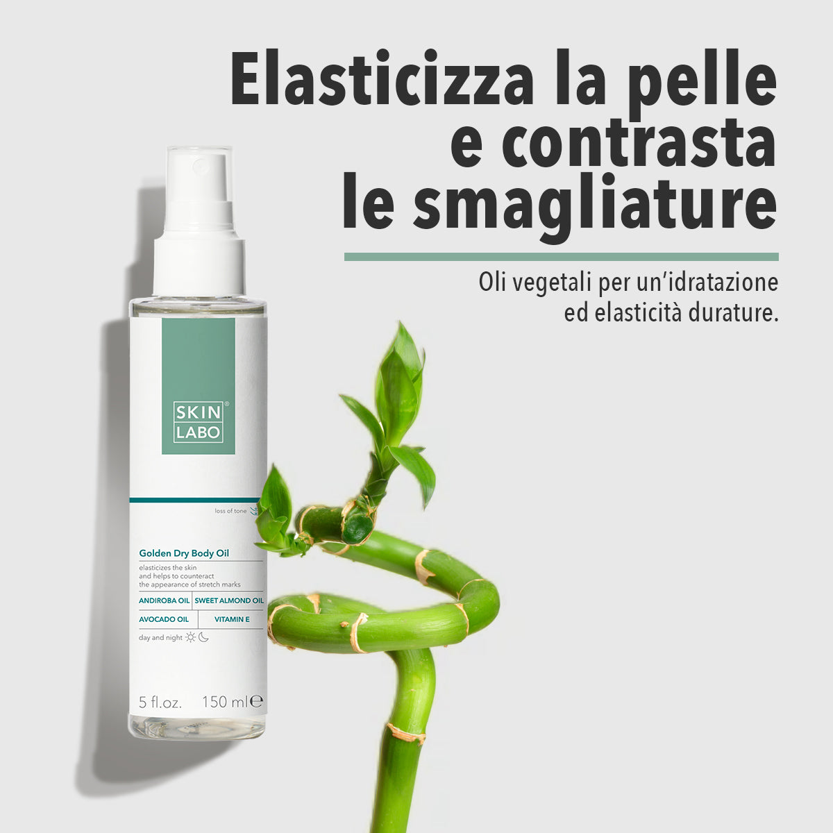 Cos'è: Olio corpo idratante e nutriente che elasticizza la pelle e aiuta a contrastare le smagliature. La sua formula a base di oli vegetali lascia la pelle idratata e tonica, asciugandosi rapidamente.